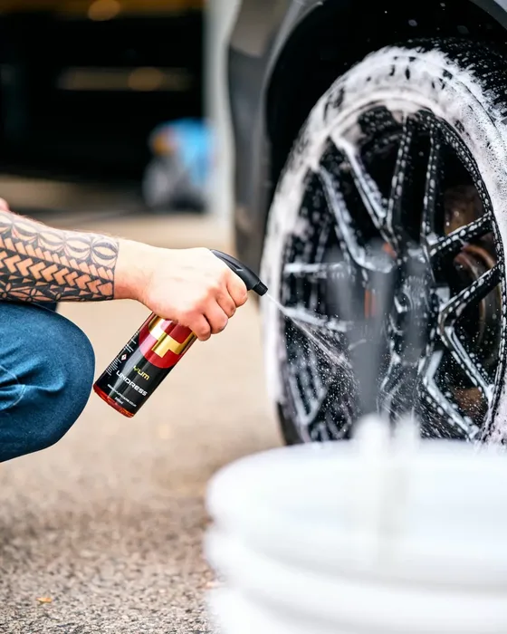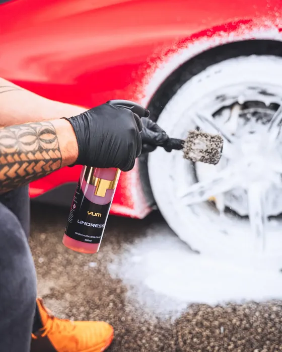 אנו ממליצים להשתמש ב-Yum Undress בכל שטיפה במהלך תהליך ניקוי הגלגלים כדי להבטיח שכל חומר הגנה וההברקה, יתחבר כראוי למשטח.