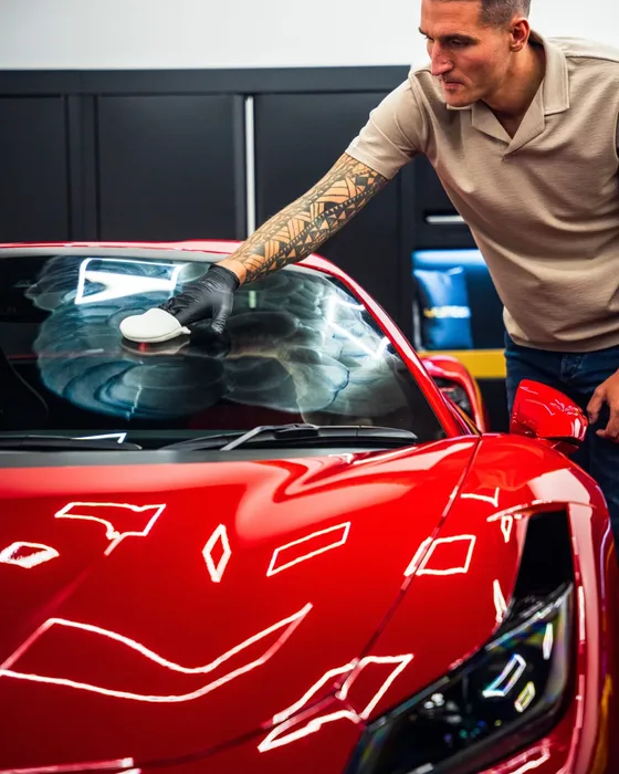 בדרך כלל אנו מתחילים על השמשה הקדמית, ואז עוברים מסביב לכל הרכב.