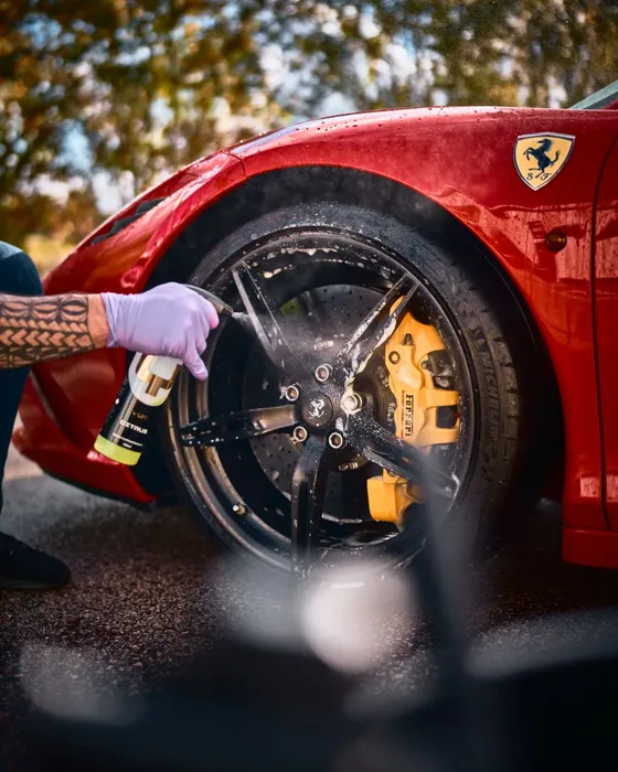 נוזל ניקוי הגלגלים הנוזלי שלנו, בעל צמיגות דמוית ג'ל, נצמד לגלגלים לעוצמת ניקוי מעולה ומתמקד בחלקיקי ברזל ומתכת מבלי לזלוג.